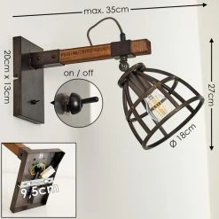 Hofstein Haervej Wandleuchte Schwarz, Holz dunkel, 1-flammig